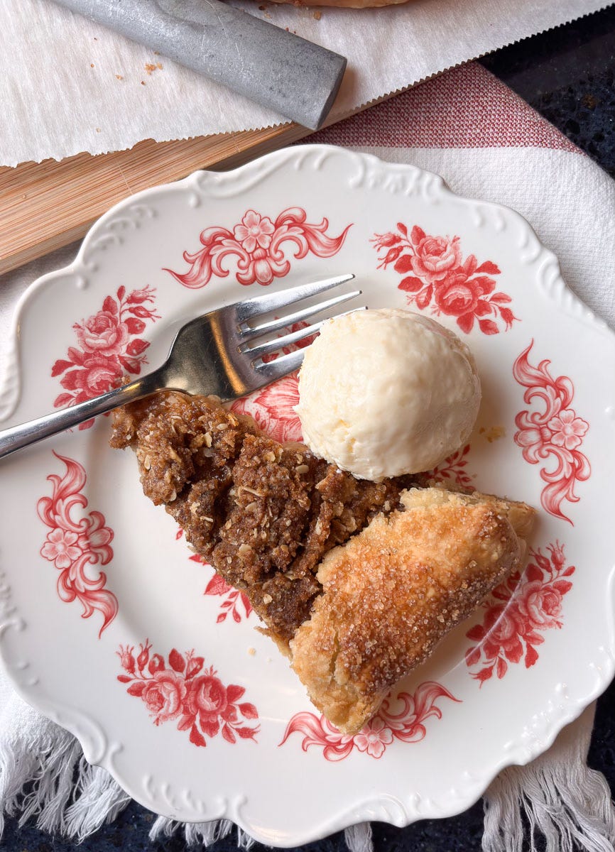 Look at that flaky, buttery crust, will ya?! And the way the crisp melts down into the apples, the apples hold their shape but become jammy and tender. By my calculations this dessert is perfection!